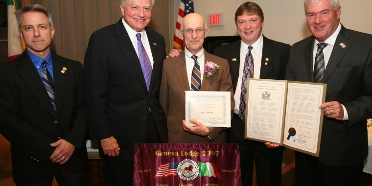 Senator Mike Nozzolio presents Michael Scaglione with a special New York State Resolution