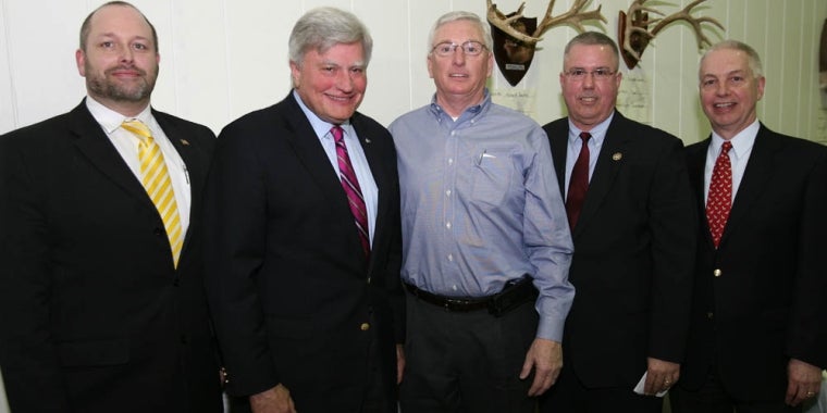 Pictured left to right are: Wayne County Clerk Mike Jankowski; Senator Mike Nozzolio; Pastor Tim Young; Wayne County Sheriff Barry Virts; and Assemblyman Bob Oaks.