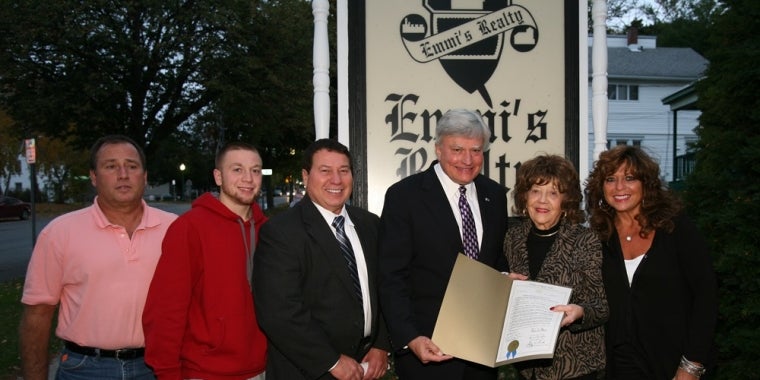 Senator Nozzolio visits Emmi’s Realty to present a special New York State Resolution