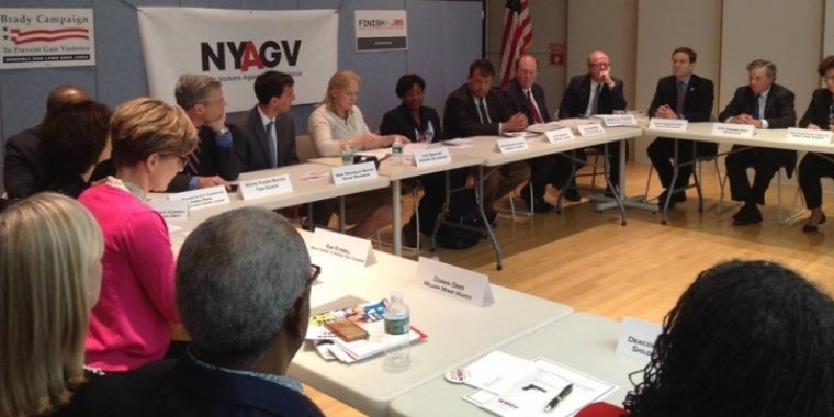 (New Rochelle - October 9th) An informative roundtable discussion in New Rochelle was led by U.S. Senator Kirsten Gillibrand on October 9th. Senator Stewart-Cousins joined with other elected officials including State Senator George Latimer in discussing how best to combat gun violence. Senator Gillibrand also discussed the Hadiya Pendleton and Nyasia Pryer-Yard Gun Trafficking & Crime Prevention Act of 2015 that she has introduced. The bi-partisan bill would make gun trafficking a federal crime, and help law enforcement in the crackdown on illegal guns purchased elsewhere that are brought to our area and sold illegally. The State Senate Democrats, led by Senator Stewart-Cousins were instrumental in passing the NYSAFE Act, and have led the fight to curb gun violence and protect lives while also respecting Constitutional rights.