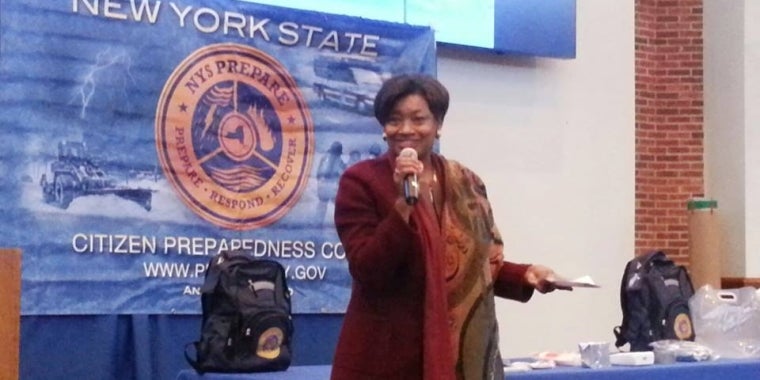 (Dobbs Ferry - January 30th) Did you know that New York State, in collaboration with the National Guard, is helping train citizens to be ready when disaster strikes? At the Citizen's Preparedness session in Dobbs Ferry, Senator Stewart-Cousins encouraged her constituents to have a preparedness kit in hand at all times, a backpack which holds your most essential survival items you can quickly grab at a time of an emergency, and to sign up for NY-Alert to receive critical emergency-related information. The Senator voted for $30 million in funding in the State Budget last year to improve New York's ability to handle emergencies across our state and is glad to see it all in fruition.