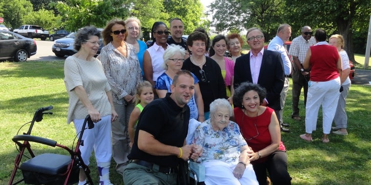 Senator John A. DeFrancisco had the honor of attending a dedication ceremony for the Debbie Bova Memorial Garden at Schiller Park on Friday, August 14, 2015. Senator DeFrancisco is pictured with Friends of Schiller Park and family members including Marie Bova, Debbie's mother.