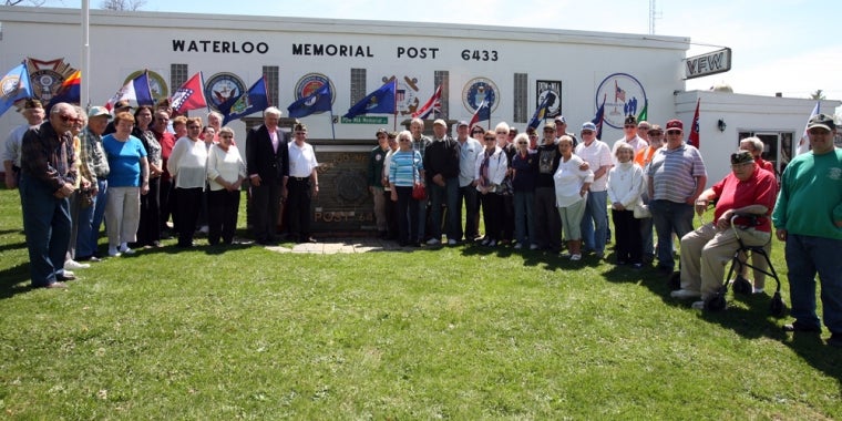 Waterloo- Senator Mike Nozzolio recently joined members of the Waterloo VFW Post 6433 and their families at the unveiling of the "50 State Flags" ceremony. The flags, representing all 50 states, were obtained by Senator Nozzolio and presented to the VFW to recognize Waterloo as the national birthplace of Memorial Day. These flags will be displayed on special occasions to honor the sacrifices of our veterans who continue to protect our freedoms and our liberty. Senator Nozzolio has been a strong advocate for our veterans and their families and is a sponsor of legislation that would create a “New York State Veterans Remembrance” license plate. The funds from these license plates would go into New York's Veterans Remembrance and Cemetery Maintenance Operation Fund and be used to create and support veterans cemeteries in New York State, including the Sampson Veterans Memorial Cemetery in Seneca County.