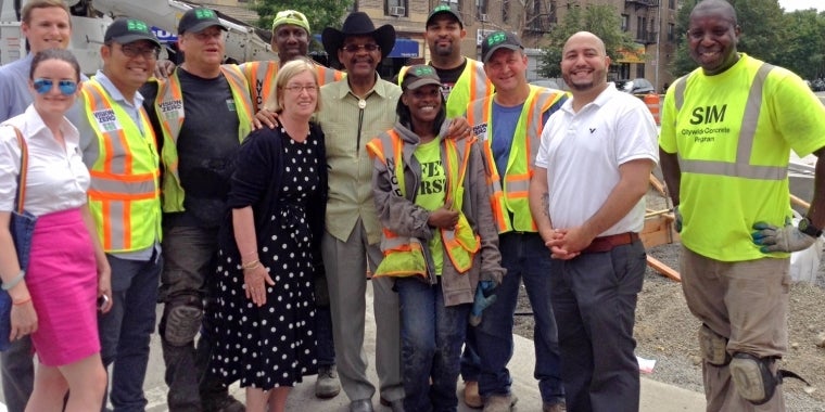 Senator Díaz and CB 2 District Manager Rafael Salamanca, Jr. with Bronx DOT Borough Commissioner Constance Moran and DOT crew
