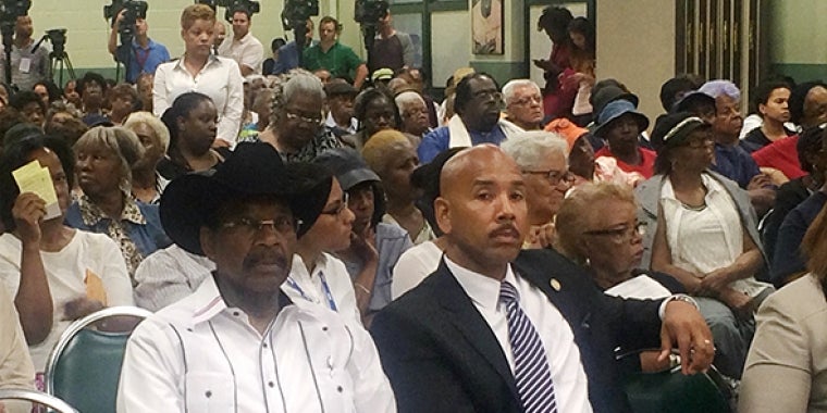 Senator Rev. Rubén Díaz, Sr. with Bronx Borough President Rubén Díaz, Jr. at the Concourse Village Town Hall meeting about Legionnaire's Disease [August 11, 2015]
