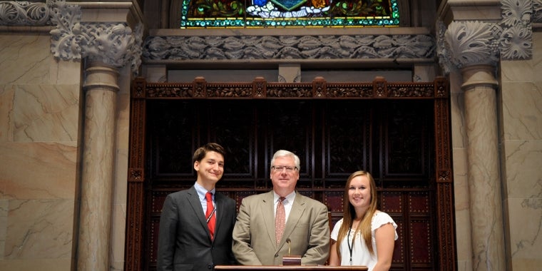 Albany, N.Y.--State Senator Tom O’Mara (R-C, Big Flats) welcomed two area high school students to the State Capitol on Tuesday, May 19, 2015.