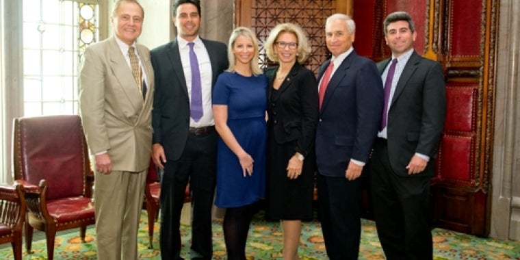 (Senator Bonacic is pictured with Janet DiFiore and her family. Pictured from L-R are, son Joseph Glazer, daughter Alexandra Murphy, Mrs. DiFiore, husband Dennis Glazer, and son Michael Glazer.)