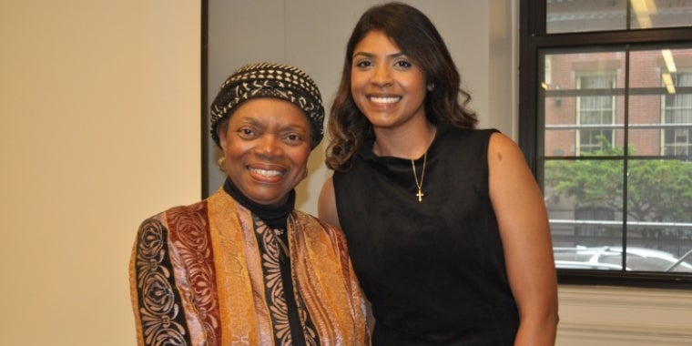 Senator Montgomery congratulates Sandra Fernando, Caucus CUNY Scholar and 2017 graduate of the City College of New York.