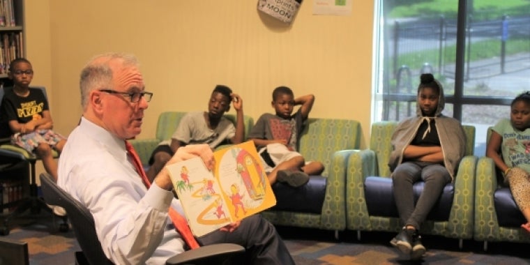 Rochester, NY- Senator Mike Ranzenhofer joined the fight to end poverty by participating in Red Nose Day at the Boys & Girls Club in Rochester. He read three books to children during a visit to the club.