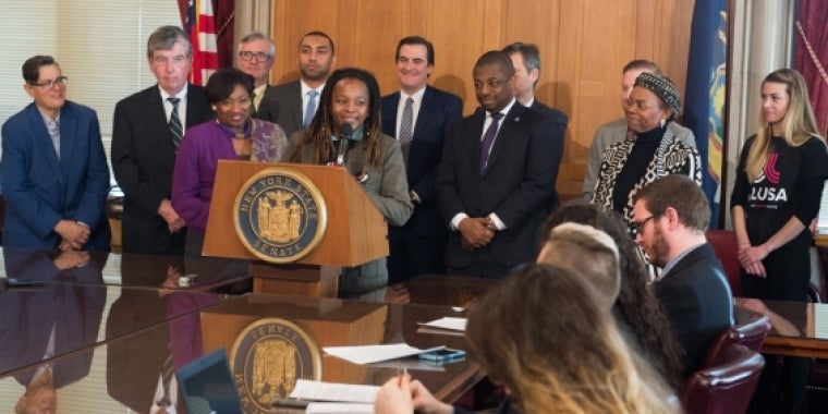 Erin Leigh George, M.S.W., the New York State Campaign Coordinator for JustLeadershipUSA, said, “JustLeadershipUSA and #FREEnewyork - a statewide campaign led by directly impacted New Yorkers and more than 250 organizations and faith leaders - applaud the New York State Senate Democrats for responding to the urgent need for bold pretrial reform by including Gold Standard bail reform [Senator Gianaris – S.3579-A] and discovery reform [Senators Bailey & Benjamin – S.7722] in their criminal justice reform package. People must not be locked up because they are too poor to afford bail. They must not be kept in the dark about the evidence being used in their cases. These groundbreaking reforms are vital to ensuring due process and a fairer system. Our State must commit to preserving the health, family and community ties, and social safety net of all New Yorkers so they can have a fair shot at justice.”