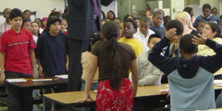 Senator Charles J. Fuschillo, Jr. (8th Senate District) recently visited the fifth and sixth grade students of Washington Rose Elementary School in Roosevelt to urge children to say "no" to tobacco.