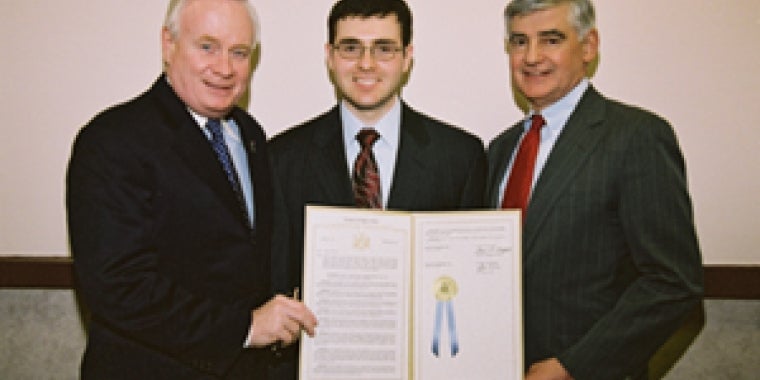 Albany- State Senator Marty Golden (R-C-I, Brooklyn) honored Brooklyn College student Eugene Shenderov upon the occasion of his earning a 2005 Rhodes Scholarship with a New York State Senate Resolution which was read and presented to Mr. Shenderov in the State Senate Chamber. Senator Golden also had Eugene Shenderov, along with Brooklyn College President Christopher Kimmich, as guests on his Brooklyn Community Access Television Show, "Legislative Report with Senator Golden".
