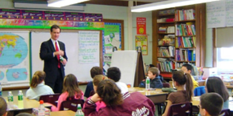 Senator John Flanagan (2nd Senate District) recently visited the Nassakeag Elementary School in Setauket to speak with Ms. Cassie Sheridan's 5th grade class. As part of their government studies, Senator Flanagan met with the class to discuss his role in the New York State legislative process.