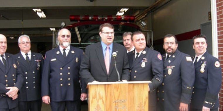 Johnson, surrounded by fire chiefs and officials from across the 7th Senate District, announced his measure at the The Vigilant Fire Company in Great Neck.