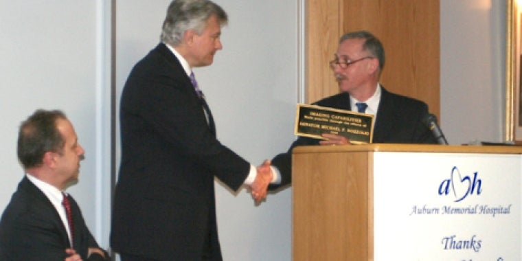Robert K. Bergan, President of the Auburn Memorial Hospital Board of Trustees, said, “This is more good news for the continued revitalization of Auburn Memorial Hospital. Because of the Senator’s hard work, we are turning around our finances and this State funding will help to ensure a brighter future for the hospital and all of the people that it serves.”