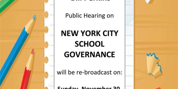 As you may be aware, Mayoral Control sunsets in June of 2009. Subsequently, the institution of Mayoral Control must be addressed by the New York State Legislature. The creation of the New York City School Governance Task Force and the intention behind this hearing was to learn the various opinions and viewpoints of the parties affected by Mayoral Control. Each member of the task force has held or is planning to hold a hearing to gather a consensus of the assorted positions on Mayoral Control throughout New York City.