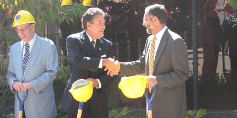Nazareth College President Daan Braveman was joined today by Senator Jim Alesi (R-Perinton) to announce $4 million in state funds secured by Alesi for the Nazareth College Arts Center. The $10.5 million project is now fully funded. $3 million of the new gift is going to the Arts Center renovation project, and $1 million is going to address the immediate needs of the rapidly-growing music program which is part of the Arts Center. Following the announcement, Braveman, Alesi and Nazareth College Board of Trustees President Judy Wilmot Linehan, led a ground breaking ceremony for the creation of a formal entrance, patrons lounge and art gallery with major Arts Center supporters such as: the Sands family; the Wegman Family Charitable Foundation; the John and Jayne Summers Foundation; Dawn and Jacques Lipson, M.D.; M&T Bank Foundation; and Harter, Secrest & Emery LLP. For more details, visit www.naz.edu/artscenterrenovations .
