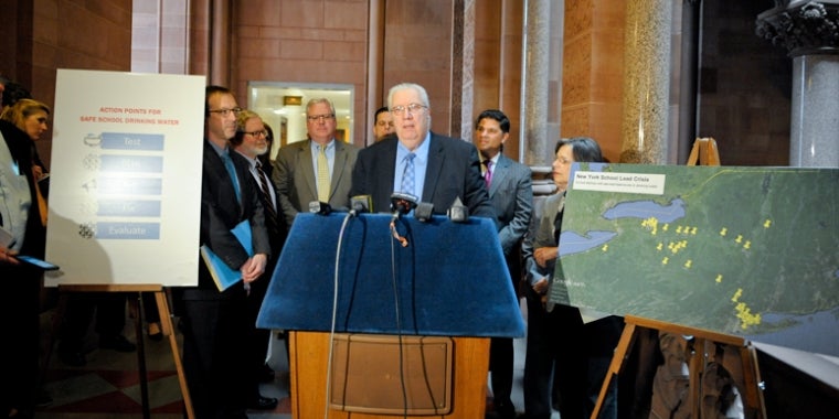 Senator Carl L. Marcellino today presented the New York State Conspicuous Service Cross, the State’s highest Military honor to WWII Veteran Louis John Fox, 82, of Huntington Station. As an Aviation Machinist Mate in the U.S. Navy, Mr. Fox was part of reconnaissance missions from Tinian Island to Japan. The Enola Gay, which carried the atomic bomb to Hiroshima, started its long and historic flight on August 6, 1945 from Tinian Island.