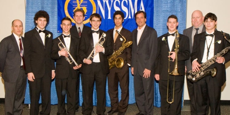 The students, Mark Adler, Evan Allen, Frank DeChirico, Alex Hoffman, and Benjamin Katz all performed with the All-State Instrumental Jazz Ensemble in the Empire State Plaza for an audience of legislators, staff members, and Capitol visitors. Senator Fuschillo attended the performance and congratulated each of the five students on being selected as All-State musicians.