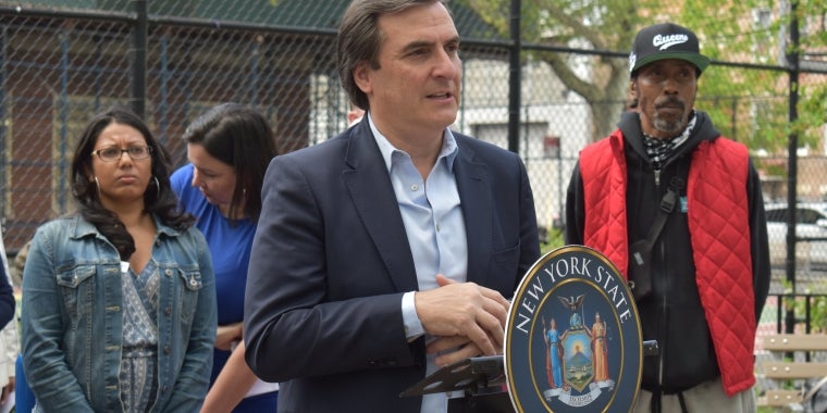 On Friday, May 6, state Senator Michael Gianaris (far r.) attended and gave remarks at the opening of the city Department of Health’s new headquarters in Long Island City. Seen here at the opening are (L. to r.); Councilmember Jimmy Van Bramer, Health Commissioner Thomas Farley and Deputy Mayor Linda Gibbs.