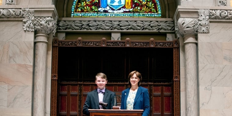 As part of a resolution Tkaczyk brought to the Senate floor recently, she stopped into the Amsterdam Free Library to read the children a book written by a student from the capital district.
