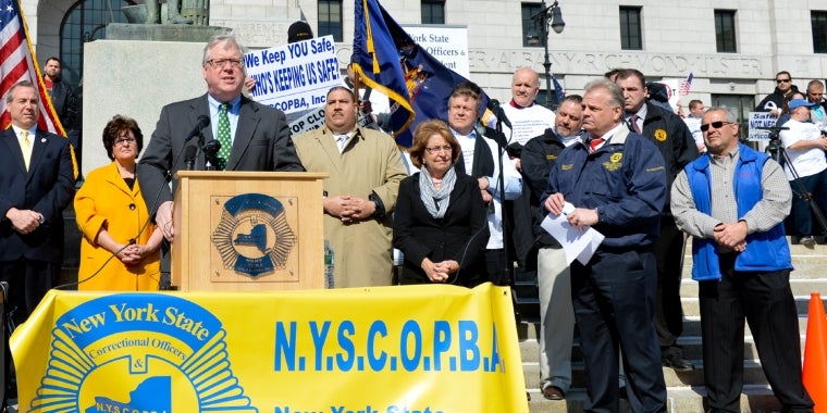 O’Mara and state Assemblyman Phil Palmesano met with local Monterey Shock supporters who traveled by bus from the Southern Tier to Albany to protest Cuomo’s plan to shut down several correctional facilities this year, including Monterey.