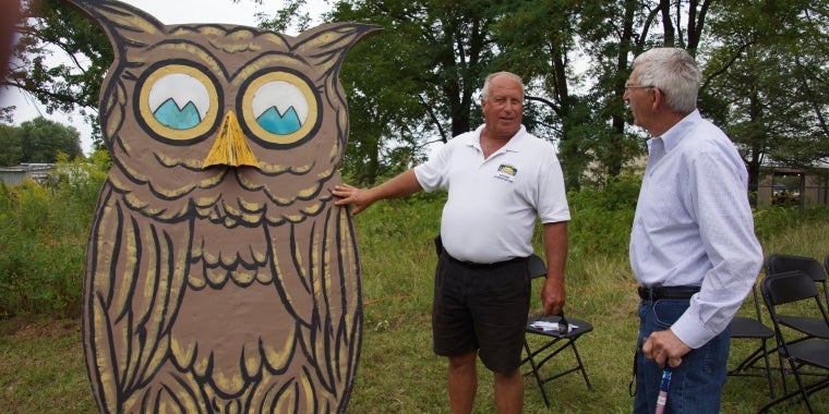 The Rapids Day community event in the Town of Lockport Saturday not only celebrated the hamlet with a parade, but also the legacy of a popular Rapids resident, “Uncle Joe,” who was known in the neighborhood as “the Rapids Owl” in the early 1900s. This year marks the 175th anniversary of Joseph Edwards, who was posthumously commemorated – again – with an 8-foot-tall, handcrafted owl that’s been under restoration for the past two years and missing several years before that. Senator Ortt took part in the re-dedication ceremony as the Rapids Owl made its ‘larger than life’ return to the hamlet. Read the full article in the Lockport Union-Sun & Journal. The Senator is pictured with Norm Pearson of Lockport.