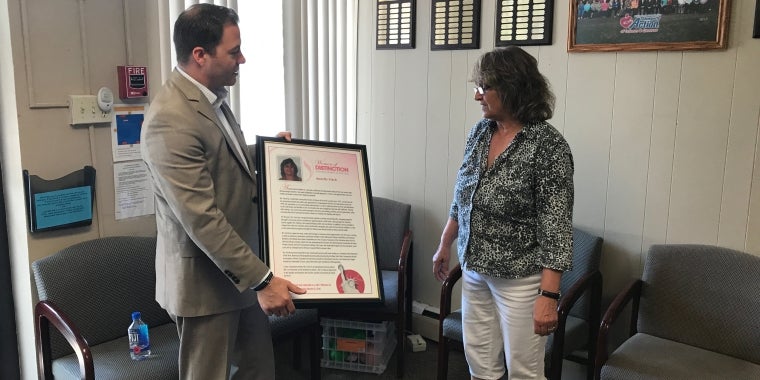 Annette Finch of Albion was Sen. Rob Ortt’s pick for the New York State Senate’s Women of Distinction award, and on Friday, he visited her office to present her with a plaque in her honor.
