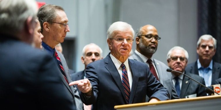 State Sen. Jim Gaughran (D-Northport) and Assemb. Fred Thiele (I-Sag Harbor) promised to work toward putting the AIM funding back when state lawmakers come up with their proposed budget, but urged Cuomo to heed the call of Long Island officials and provide an amendment to his budget, which Thiele said the governor could do by Feb. 14, Valentine’s Day.