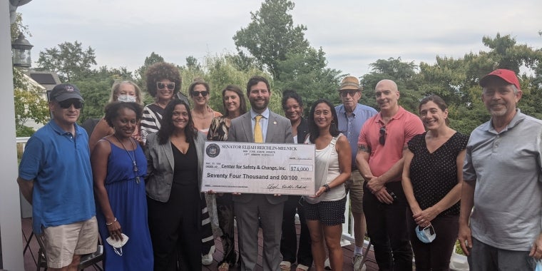 NEW CITY – Senator Elijah Reichlin-Melnick visited the Center for Safety and Change in New City on Tuesday afternoon to deliver a check for $74,000 in support of the Center’s legal program, which provides free legal services to victims of gender-based violence, as well as a new initiative to provide outreach and education to the Rockland County community on gun violence.