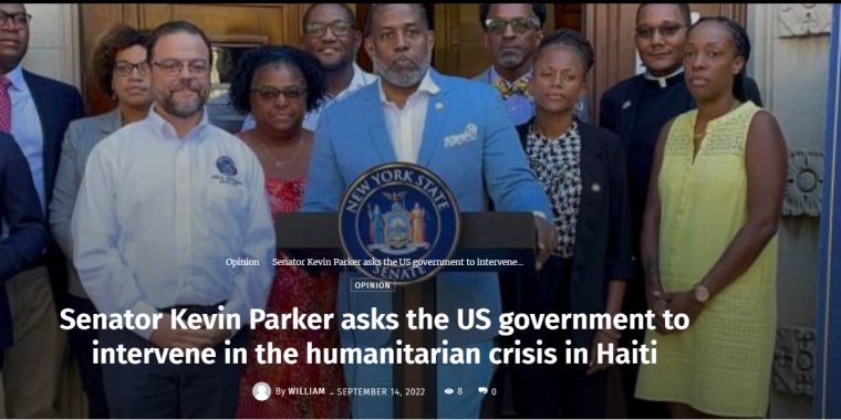 Senator Kevin Parker asks the US government to intervene in the humanitarian crisis in Haiti