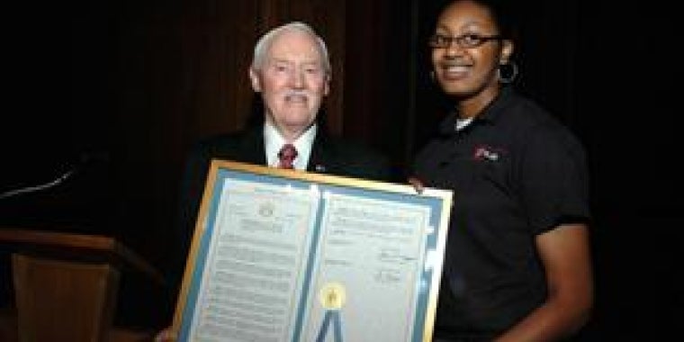State Capitol, Albany, New York, June 8, 2006 -- State Senator Owen H. Johnson (4th Senate District, Babylon), Chairman of the Finance Committee, recently presented Danielle Wilson of St. John the Baptist Diocesan High School in West Islip with a legislative resolution recognizing her achievement of becoming the first Long Island student-athlete to be named to the McDonald’s 2006 All-American Team. Danielle is a senior at St. John’s, averaging about 30 points and 20 rebounds per game. During her athletic career, Danielle has scored over 2,000 points earning her acceptance into an exclusive Long Island girls basketball club.