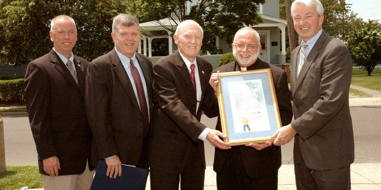 Pictured, from left to right, are: William Dempsey, Treasurer; Paul Pugliese, Second-Vice President; Geraldine Sheridan, Second-Vice President; Senator Owen H. Johnson; Thomas F. Roberts III, President; Elizabeth Benham-Herman, Member of the Board of Directors.