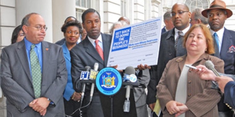 "Today we are starting a campaign asking New Yorkers to call on their leaders in the Senate and Assembly as well as the Governor to demand immediate action on crucial issues concerning the economy and the health of our children," Smith said. "We need to find a way to put aside our
