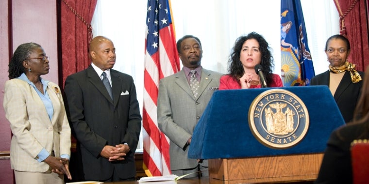Senator Montgomery, Assembly Perry and their legislative colleagues Senator Diane Savino (D-Staten Island/Brooklyn), Senator Eric Adams (D-Brooklyn) and Assemblywoman Inez D. Barron were joined at the press conference by representatives of the Correctional Association of New York, The Center for Reproductive Rights, Human Rights Watch, and M. Tracey Brooks, President and CEO of Family Planning Advocates of New York State, as well as several formerly incarcerated women who were pregnant while in prison.