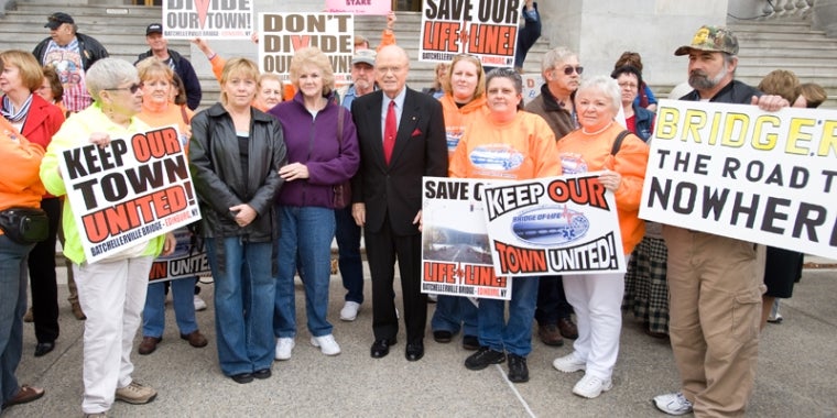 The Batchellerville Bridge, built in 1930 and last inspected by DOT in August 2008, has a safety rating of 3.35 out of 7.00. The 3,000-foot span has been reduced to one-way traffic.