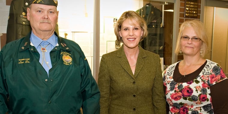 Senator Catharine Young (R,I,C – Olean) was joined by Cuba-Rushford Superintendent Kevin Shanley and Belfast Central Superintendent Judy May to present high school diplomas through New York State’s Operation Recognition in honor of Marine Corps Sergeant Lester Baker, West Clarksville, and deceased Army Air Forces Corporal June E. Lockwood, who was a Cuba native.