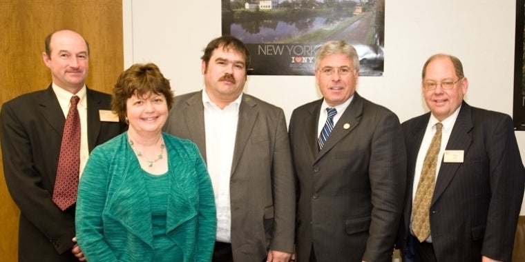 Sen. Darrel J. Aubertine with the NYS Maple Producers Association earlier this year, from left to right, Dave Campbell, Helen Thomas, executive director, Dwayne Hill, Senator Aubertine and Mike Hill.