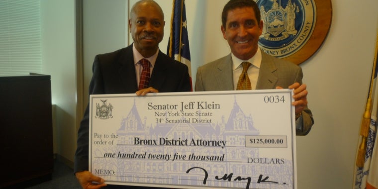 NEW YORK- On Friday, March 5th, Senator Jeff Klein (D-Bronx/Westchester) presented a $125,000 grant to Bronx District Attorney Robert Johnson to fund the expansion of the Bronx Anti-Auto Theft “Bait Car” Program.