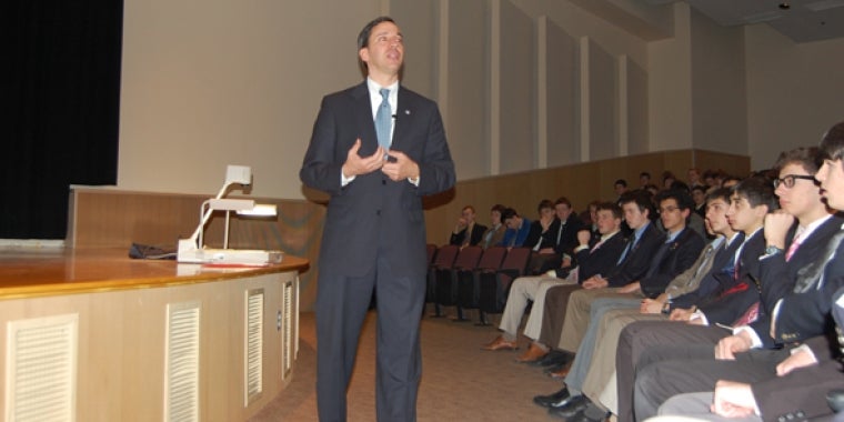 Senator Jack M. Martins returned to his alma mater on Thursday as he spoke to the Chaminade High School Social Studies Club. Senator Martins discussed the issues with about 250 members of the club in the auditorium as he continued his tour of schools in the 7th Senate District.