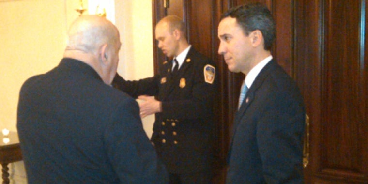 Senator Jack M. Martins attended the Albertson Fire Company's annual dinner, where he sworn in the officers of the fire company. He also presented Senate Resolutions to two 50-year members of the fire company, Dennis A. Craine and Peter F. Brala.