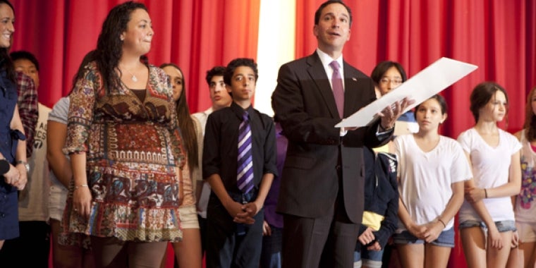 Senator Jack M. Martins visited the Searingtown School, where Optimum Lightpath presented the grant, to congratulate the school on receiving as well as thank Optimum Lightpath.