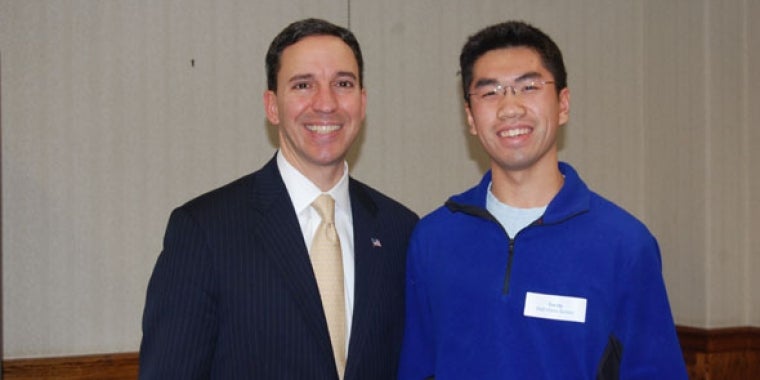 Senator Jack M. Martins recently honored Jun Kit “Timothy” He when the Senator visited Manhasset High School. Tim was one of the semi-finalists in the 70th Intel Science Talent Search competition.