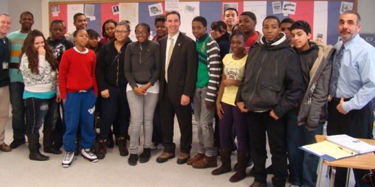 Senator Martins spoke to an 8th grade Social Studies class about the role of State government and pending issues being debated. Students asked questions about economic development, jobs and the State budget deficit. “One thing was very clear to me about my visit with the Elmont Memorial students, just as the community at large is looking for revitalization and job creation locally, young people recognize the importance of it right in the classroom. It was refreshing to me and gave me another perspective on the community that is critically important as we work this session in Albany.”