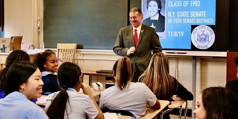 Addabbo chats with students at alma mater high school