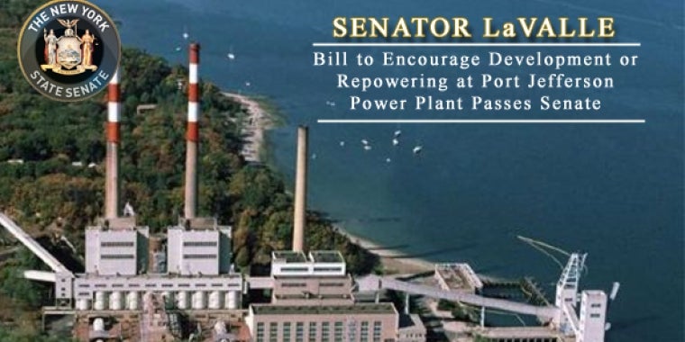 New York State Senator Kenneth P. LaValle said a bill to provide an incentive for the remediation of the Port Jefferson power plant and to create development of a new, state of the art facility on the site passed the New York State Senate today.