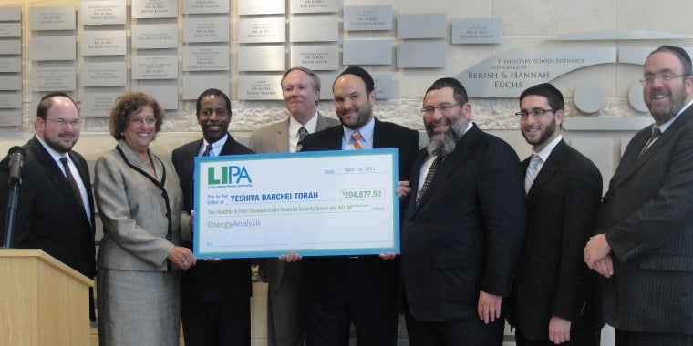 Senator Malcolm A. Smith was joined by Assemblywoman Audrey Pheffer and representatives from the Long Island Power Authority (LIPA) to announce a new energy efficiency program that saved Yeshiva Darchei Torah over $200,000 in rebates as a part of their Commercial Efficiency Program.
