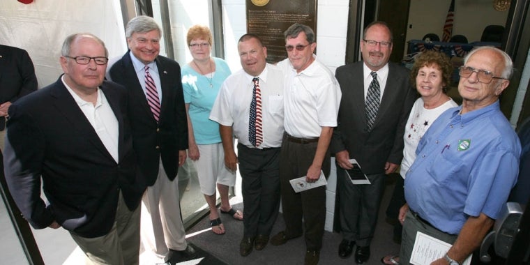 Pictured left to right are: Assemblyman Finch; Senator Mike Nozzolio; Charleen Dygert, Fleming Town Clerk; Gary Searing, Town of Fleming Supervisor; Ronald LaVarnway, Town Councilman; Gerald Dudek, Town Councilman; Ellen Dellostritto, Town Councilwoman; Arthur Fritz, Town Councilman.