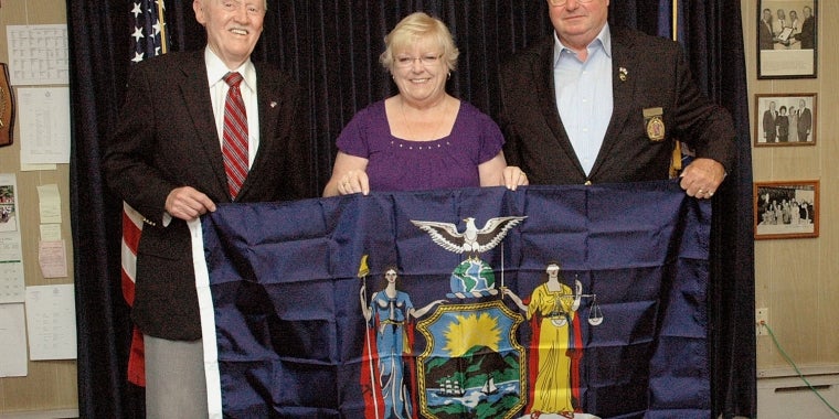 Senator Owen H. Johnson presented a New York State Flag to retired Nassau County Police Detective George Duguid and his wife, Diane of Deer Park. The flag was taken to the International Police Association’s Friendship Week in Edinburgh, Scotland by the Duguids on August 5, 2011 where it was proudly displayed alongside the American flag to represent all New Yorkers on the tenth anniversary of 9/11. Over 120 police officers from nine countries attended.