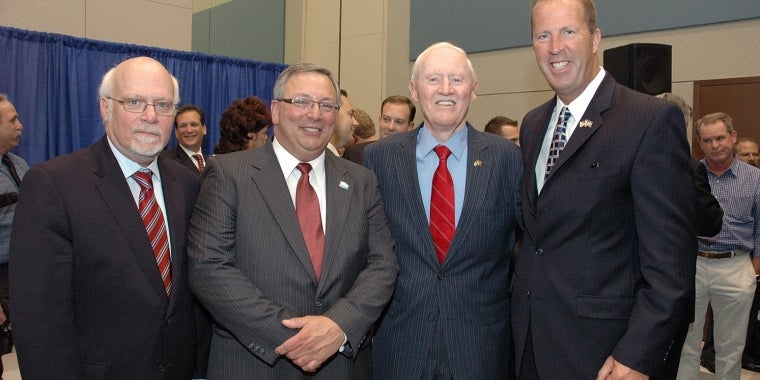 Photograph left to right: Stuart Rabinowitz, President of Hofstra University and Co-Chair of the Long Island Regional Council; John R. Durso, President of Long Island Federation of Labor and Member of the Long Island Regional Council; Owen H. Johnson, Senator; and Kevin Law, President of the Long Island Association and Co-Chair of the Long Island Regional Council.
